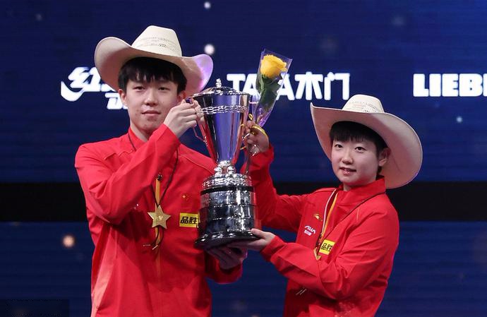 孙颖莎/王楚钦3-0横扫日本的张本智和/早田希娜,配合次数和时间并不久的这对“莎头”组合,拿下本届世乒赛混双冠军。对于第一次配对参加世乒赛混双比赛的两人而言,都具有特殊的意义,孙颖莎指出这枚金牌是他们这对组合的全新开始,而王楚钦对能在搭档如此短的时间内就夺冠,是对他们努力的肯定。