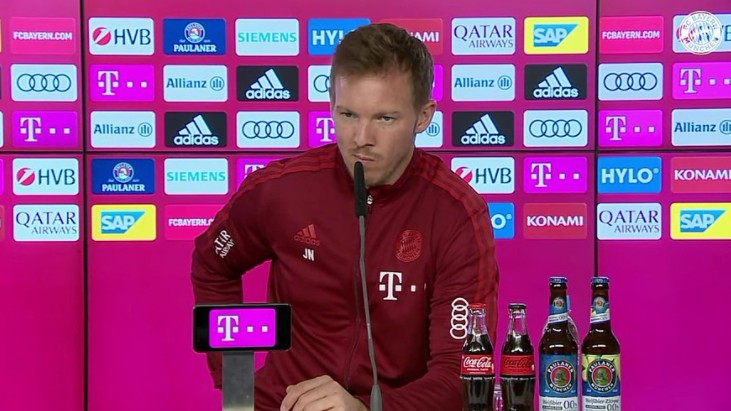 确定缺席的球员有基米希(新冠隔离)、舒波-莫廷(新冠隔离)、斯塔尼希奇(肌纤维撕裂)、萨尔(内收肌)、萨比策(小腿)。
