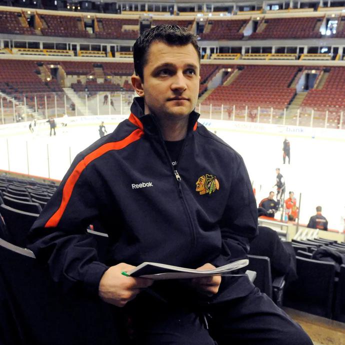 2008年,他凭借父亲在冰球界的关系得到了面试黑鹰队录像教练职位的机会。当时黑鹰总经理塔隆对他的评价是:“对自身能力非常自信,几乎到了傲慢的地步。”