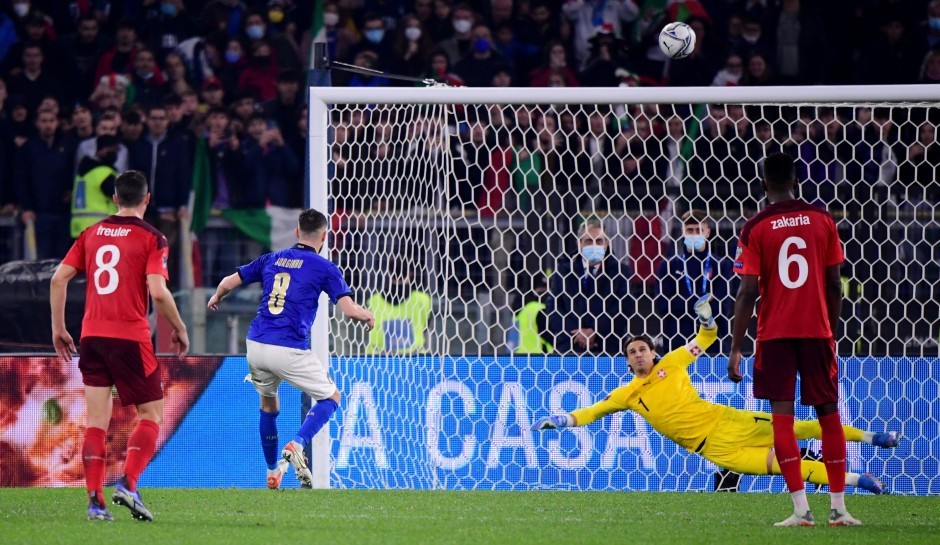然而,与英超赛场春风得意形成鲜明对比的是,意大利队的若日尼奥在点球点却遭遇了滑铁卢,为蓝衣军团效力期间他已连续罚丢了3个点球,其中以世界杯预选赛连续两次面对索默把守的瑞士大门失手最为致命,这两次罚丢直接让意大利人将小组头名拱手相让,不得已要参加残酷的附加赛而之后很可能要面对C罗领军的葡萄牙。