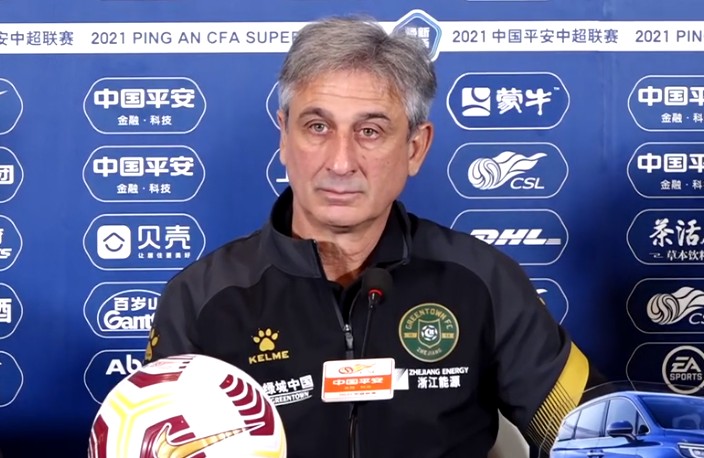 北京时间1月11日,2021中超附加赛第二回合浙江vs青岛城的赛前新闻发布会在苏州举行。浙江队主教练乔迪携球员安德里亚舍维奇出席。