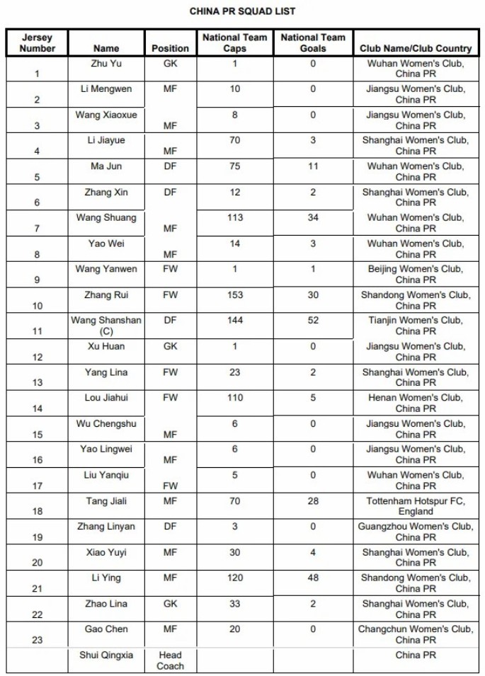 值得一提的是,马君穿上了因伤缺席的吴海燕的5号球衣,而重返国家队的门将赵丽娜则将穿22号球衣。