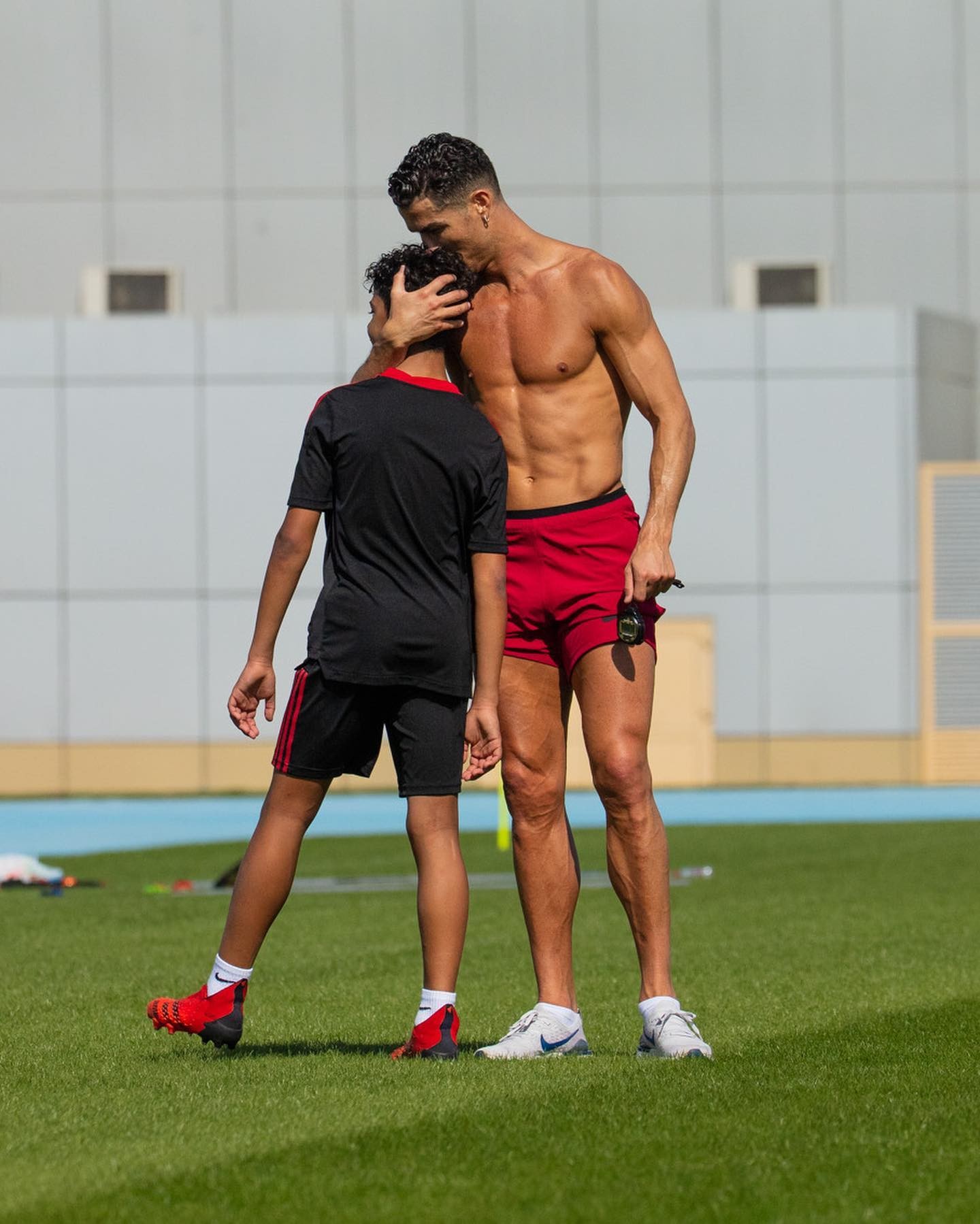 1月30日,C罗在个人社交媒体晒出他与大儿子迷你罗同场训练的照片。