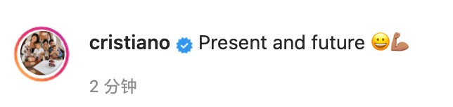C罗在个人社交媒体晒出他与儿子迷你罗同场训练的照片,并配文:“现在和未来。”