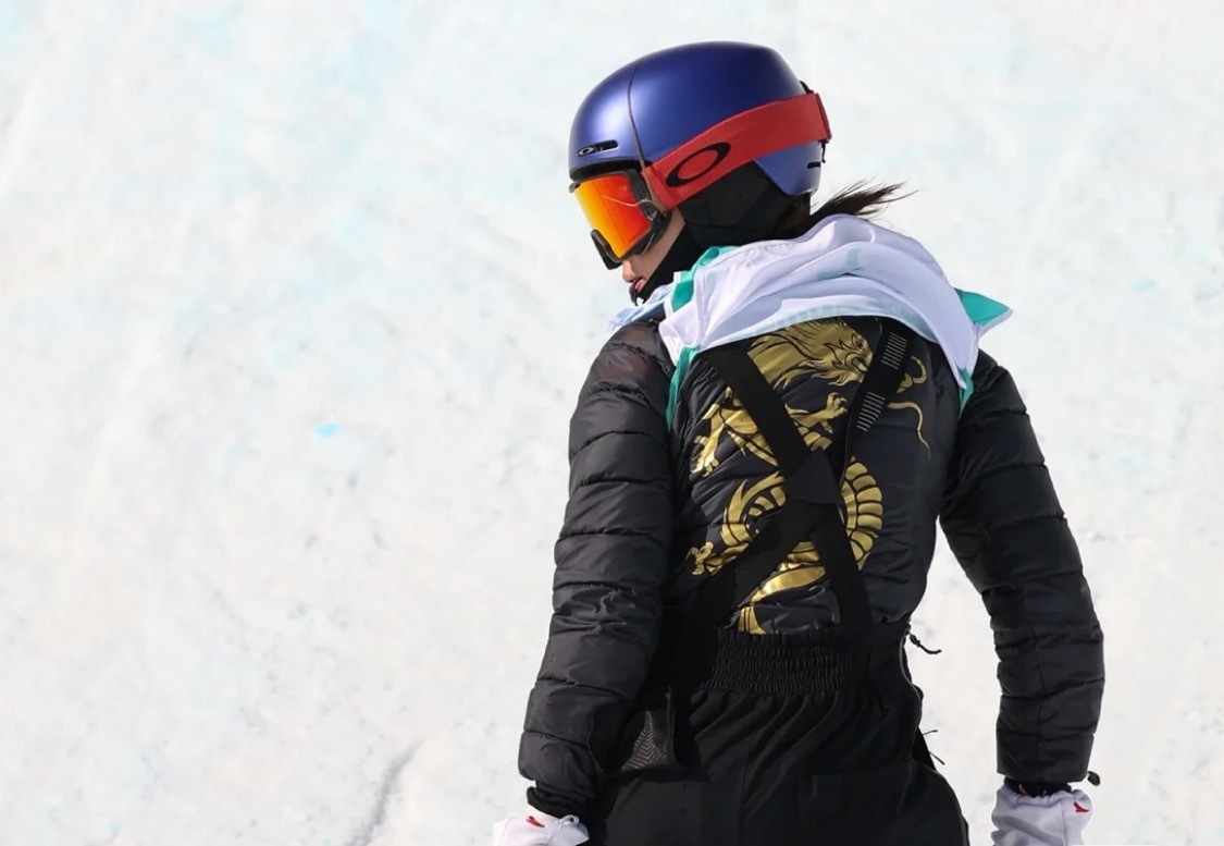 脸庞英俊、身姿飒爽的姑娘,穿着印有龙图案的运动服,披着薄荷绿色的号码背心,纵深一跃向空中完成1620极高难度动作并平稳落地,分明是一条雪中玉龙。跟小说、电影中的玉娇龙眉头紧锁不同,这条玉娇龙还落落大方,笑口常开。