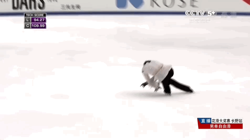 4 分 30 秒的表演,他 8 次起跳,5 次摔倒。