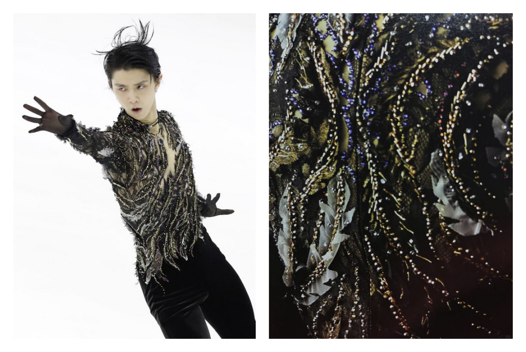 羽生结弦的这件黑金考斯滕,就十分重工。它通过独特的剪裁呈现出立体的层次感,一眼就能感受到它的华丽。