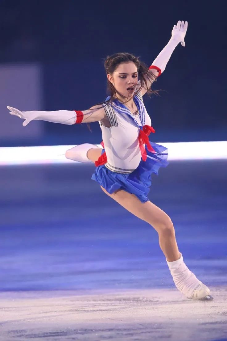 刚刚退休的梅德韦杰娃也是“老二次元”了,在冰场上cos过美少女战士。这种和大IP联动的考斯滕,也是瞬间出圈儿~