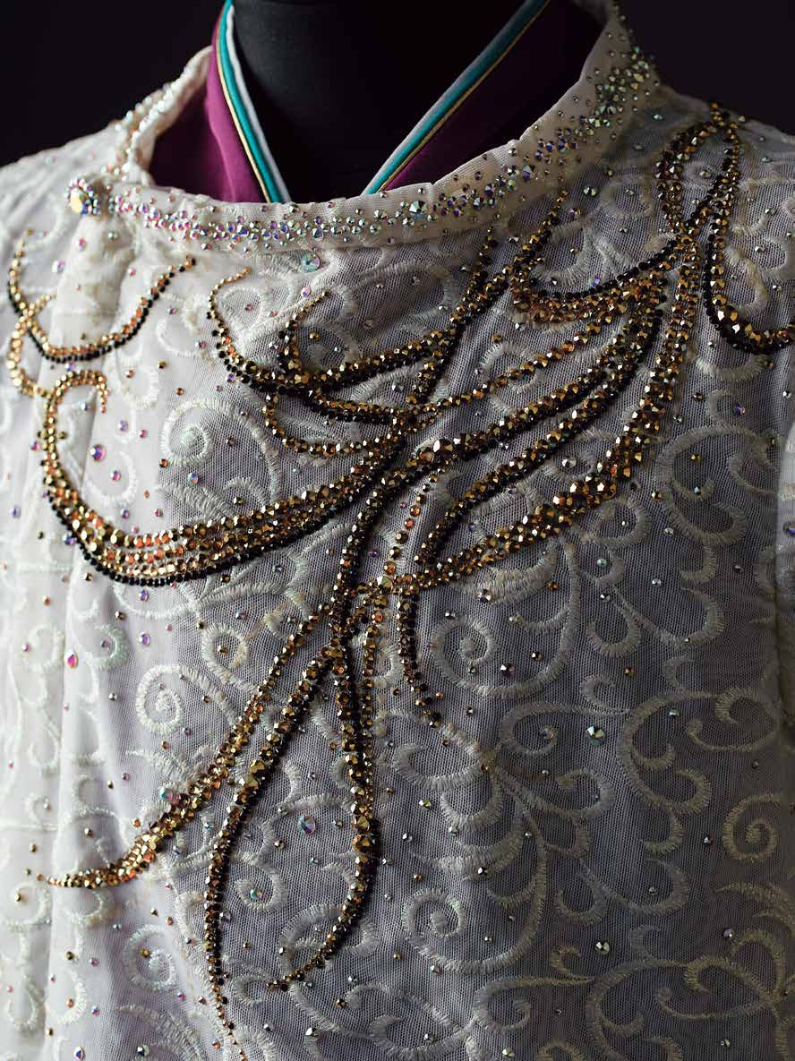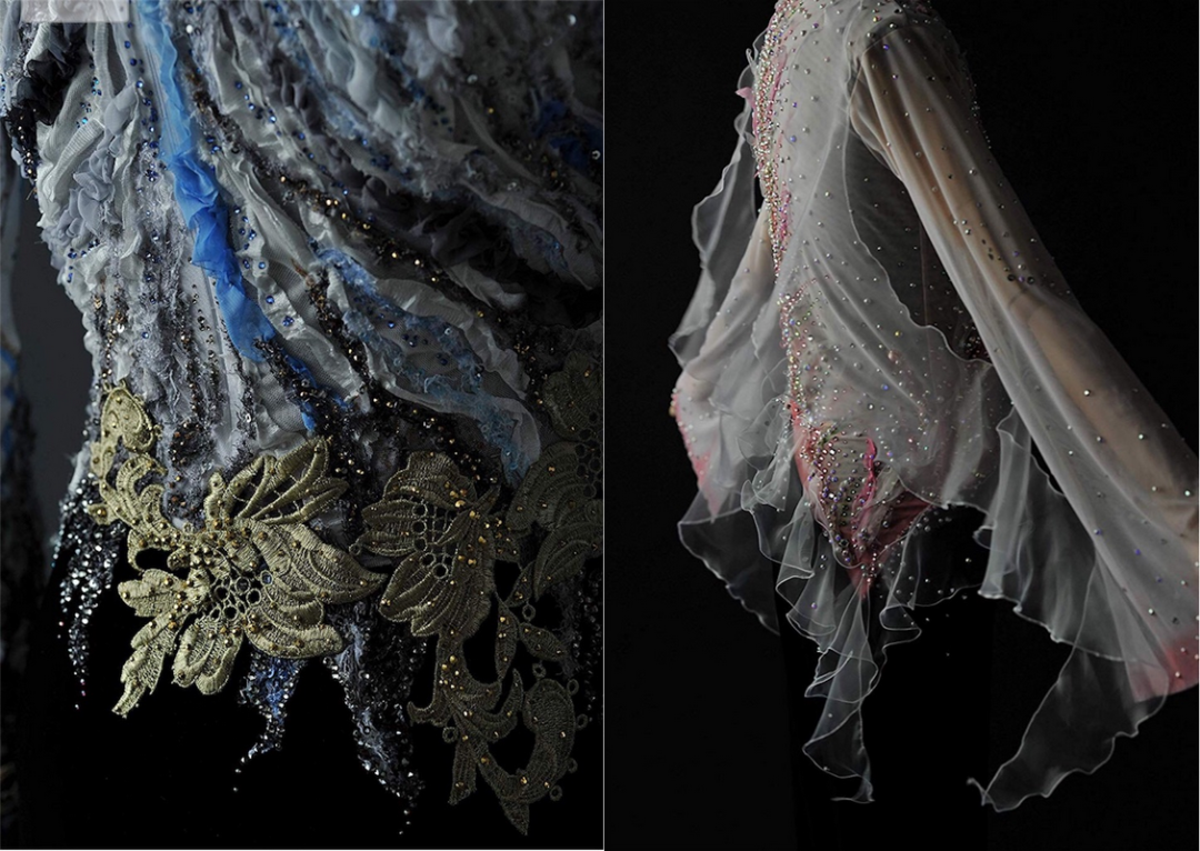 在赛场上,我们经常见到选手穿着精美的“考斯滕”起舞,十分华丽,而考斯滕的制作,也如同高定一般。