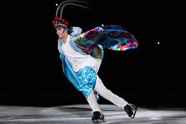 表演赛上的考斯滕,比正赛更出彩,因为对服装没有限制,所以设计上都以娱乐为主。美国花滑名将约翰尼·威尔,就曾把我国的京剧头饰,直接搬到了赛场上。