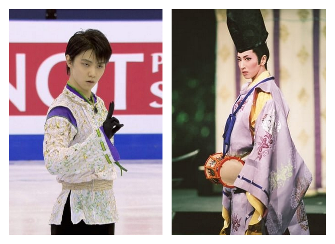 通常都和表演主题相契合,很有代入感。羽生结弦在表演《阴阳师》时,穿的考斯滕,原型就来自日本阴阳师穿着的狩衣,肩部、袖口的设计都还原了。