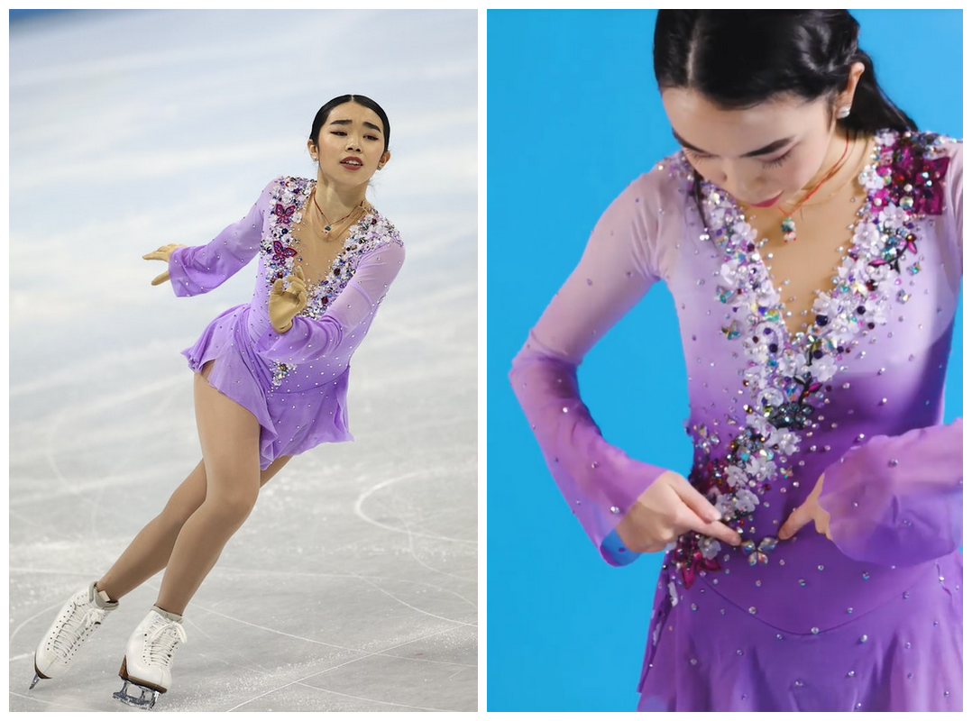 虽然大部分考斯滕都是由专业设计师完成,但在这次冬奥上,美籍华裔选手Karen Chen的考斯滕,却是由妈妈亲手制作,感觉非常厉害。