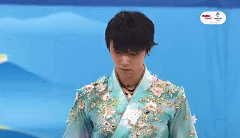 前天男单短节目上,则穿了一件性感的蓝色“羽衣”,服装设计延续他标志性的中性风,在考斯滕的加持下,羽生的表演展现出了超越女性的柔美。