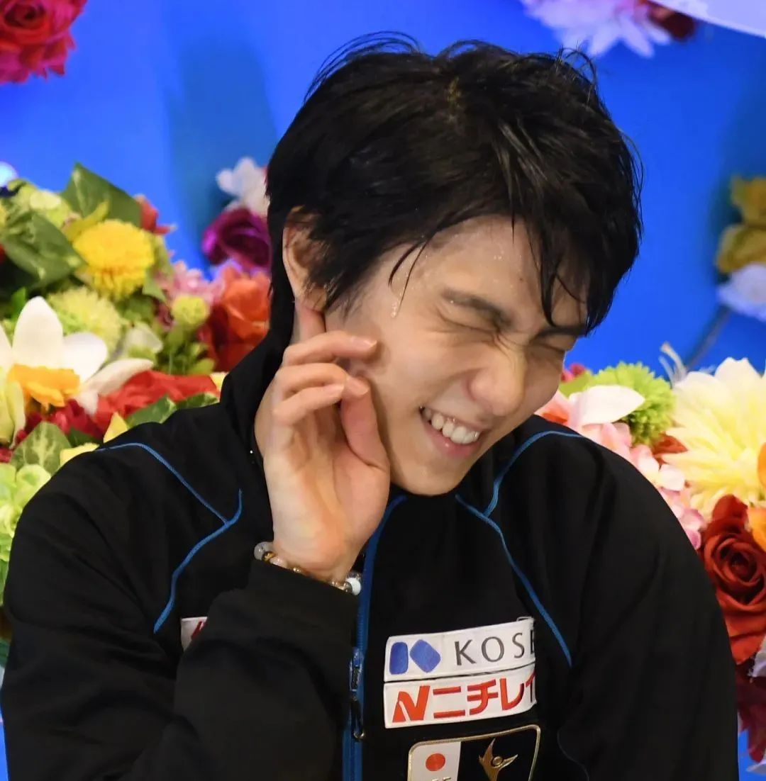 前几天赛前训练不慎摔倒,面对采访他却说“今天被冰讨厌了”,“不能日行一善,要日行十善才行啊”,这股可爱劲儿也是让人欲罢不能。