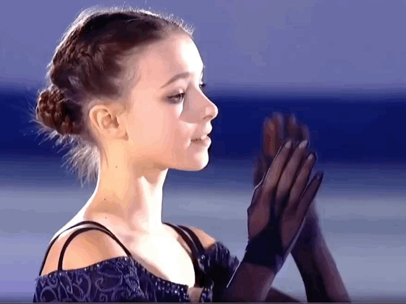 “莎莎”特鲁索娃,小姑娘看着身材纤细,但这独步天下的“蟹步”一出,腰部力量简直绝了,这动图也就看了一百遍吧。
