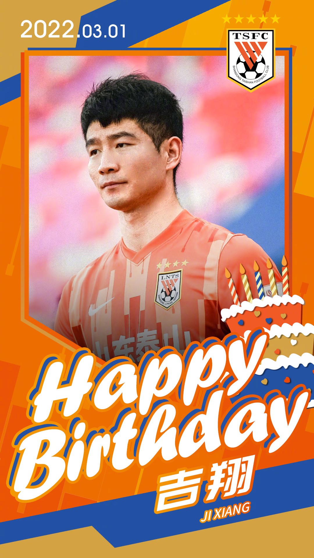 山东泰山在官方微博上发布了庆生海报并写道:“吉翔生日快乐!”
