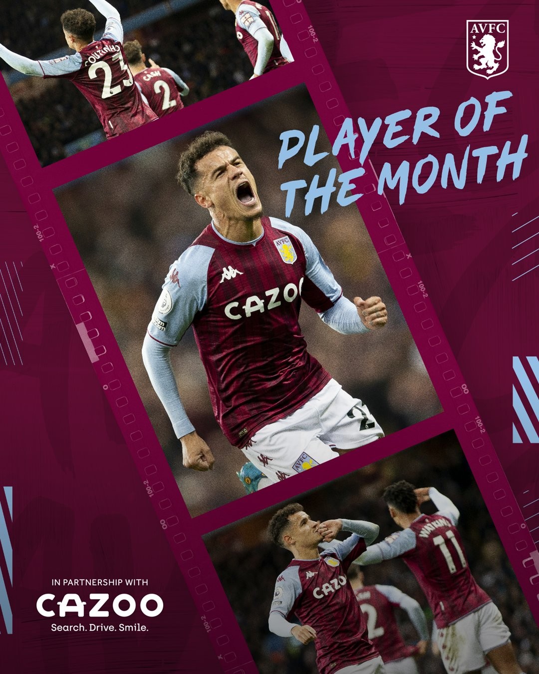 最终,阿斯顿维拉官方宣布库蒂尼奥当选了球队上月最佳球员。