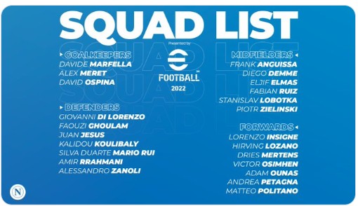 北京时间明天凌晨3点45分,意甲联赛第28轮将迎来一场焦点对决,那不勒斯主场对阵AC米兰。刚刚,那不勒斯俱乐部公布了他们出征本场比赛的23人大名单:队长因西涅领衔,洛萨诺和安古伊萨回归。