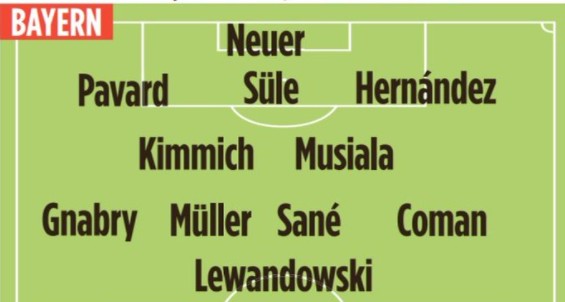 本周拜仁慕尼黑将在欧冠赛场迎来主场与萨尔茨堡红牛的第二回合淘汰赛,赛前德国媒体《图片报》预测了拜仁慕尼黑本场比赛的首发阵容。在《图片报》的预测中,拜仁排出三后卫阵型,前场有五名攻击手。