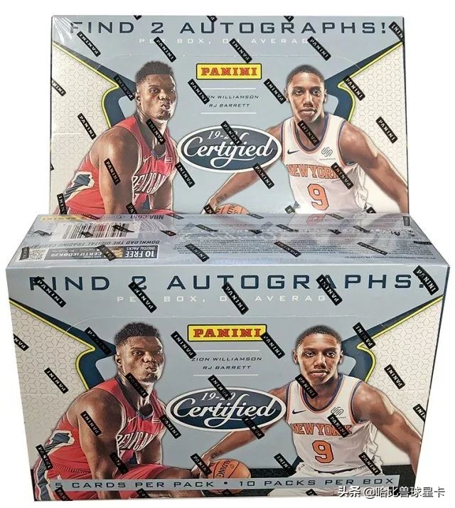 买盒。从一箱盒卡中买其中一盒。买盒可以看作是买箱的低配版。盒卡中也有配置,比如下图中的19-20 Panini Totally Certified Basketball系列盒卡,在包装盒上就写明了每盒必定保证2张签名卡。但签名质量就没法保证了,脸黑如笔者,拆了数十盒也没能拆出心仪的新秀签名卡。仔细算算,还不如直接去买一箱呢......