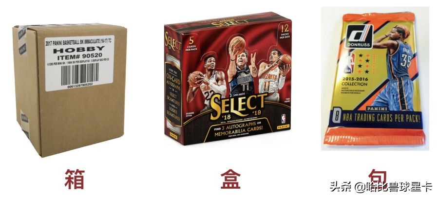球星卡的不确定性首先是获得产品的随机性。球星卡的出厂单位是箱,其次是盒,然后是包,箱盒包都有自己的固定配置。配置是固定的,你会拆到的球员则是随机的。