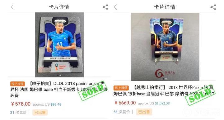 我们同样以这版姆巴佩Base卡为例,以下分别为姆巴佩普卡、银折、红折的价格。