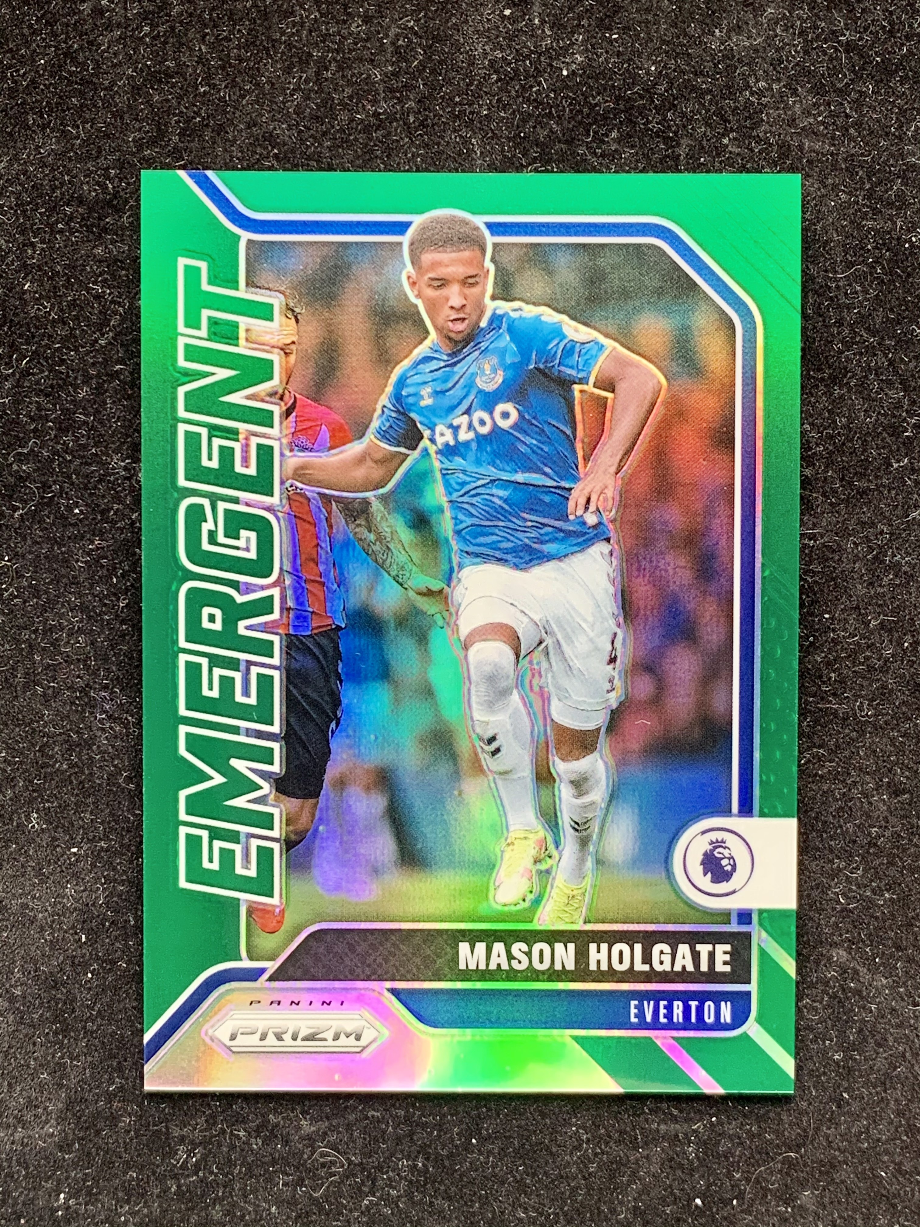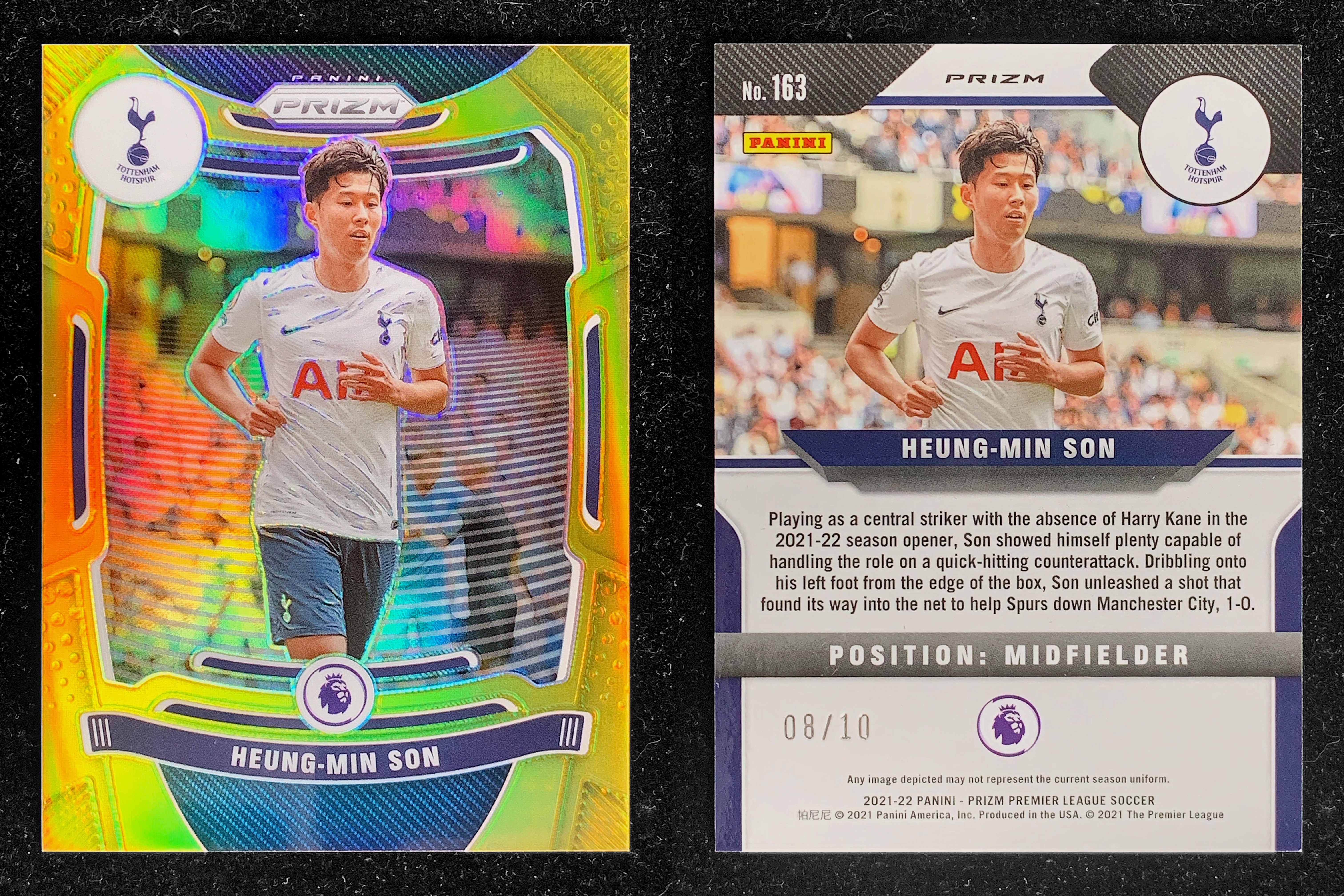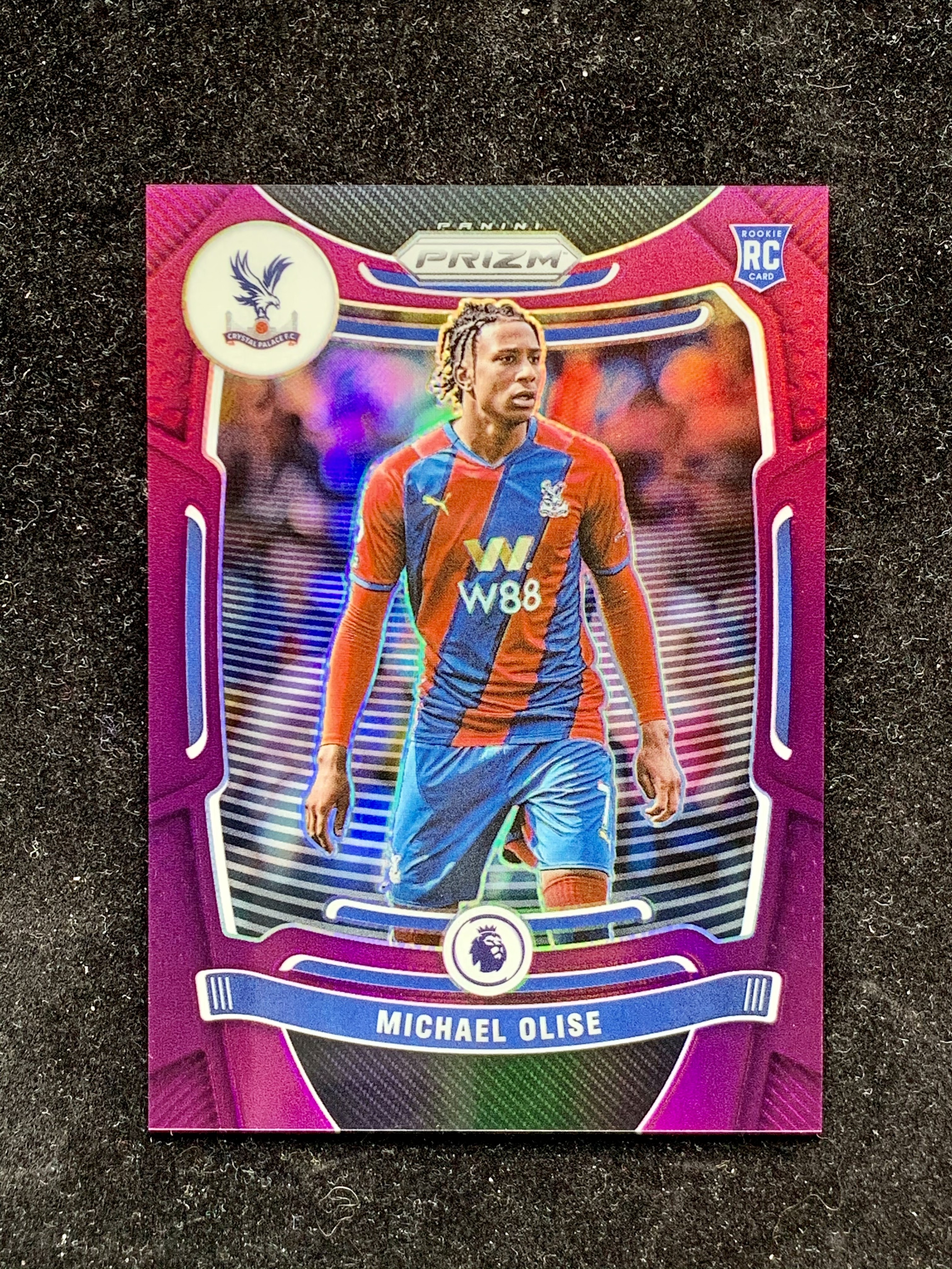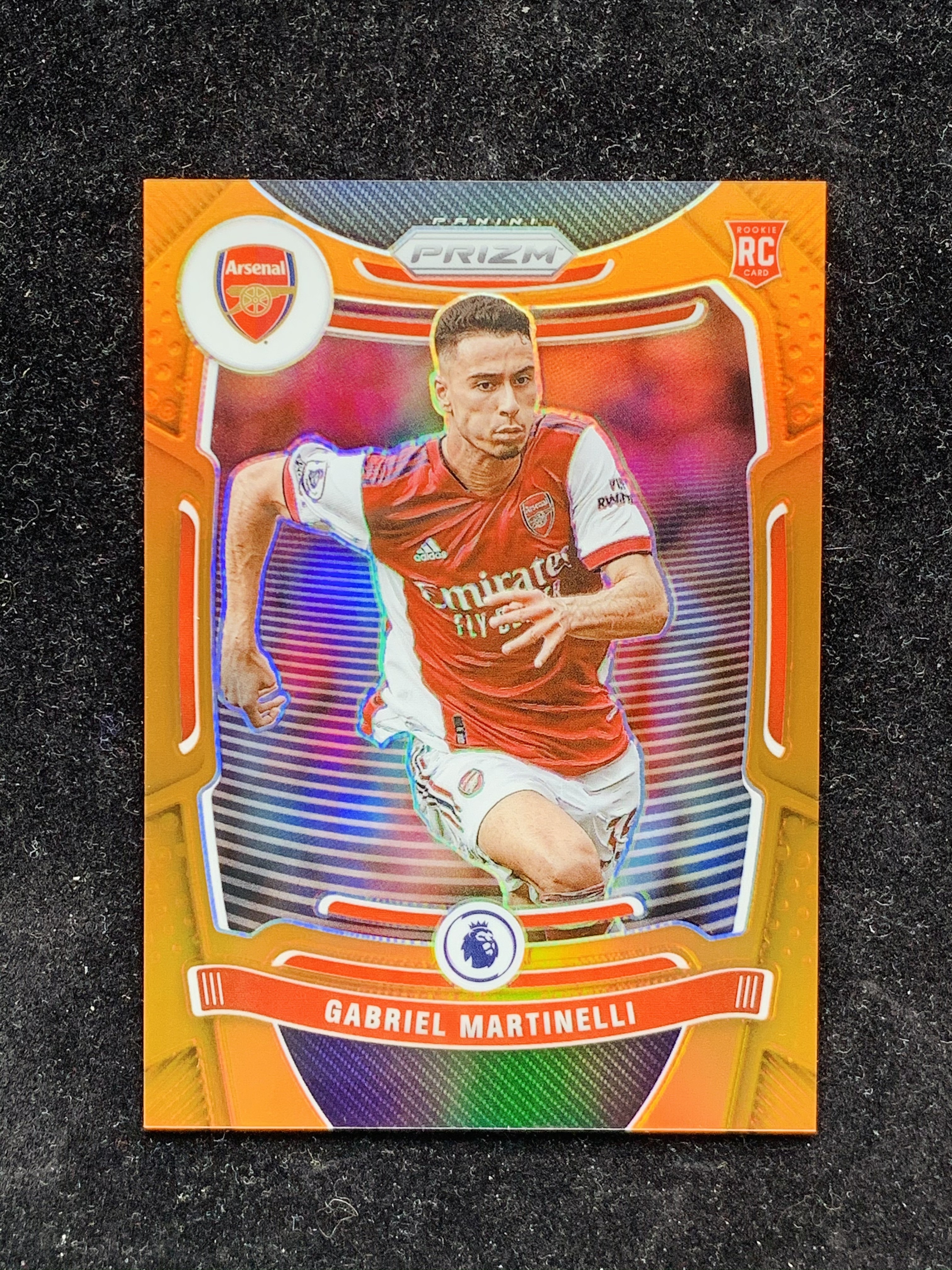 最后我们组队开拆的是今年的英超prizm hobby盒,也是狠货多多,首先是这个系列非常受期待的小妖们。世界限量25张橙折的马丁内利;世界限量10张金折的布罗亚以及世界限量99张紫折的奥利塞!