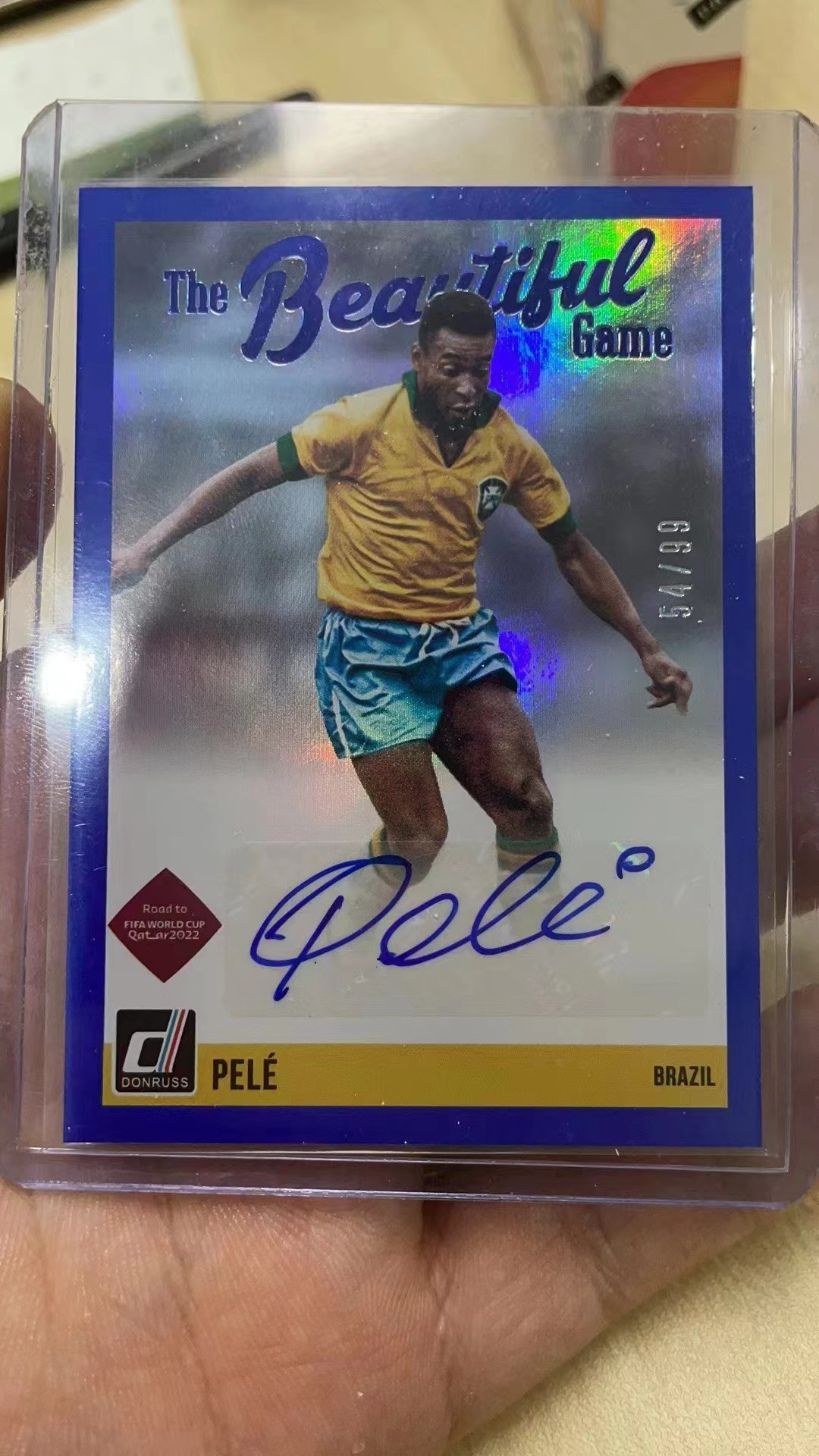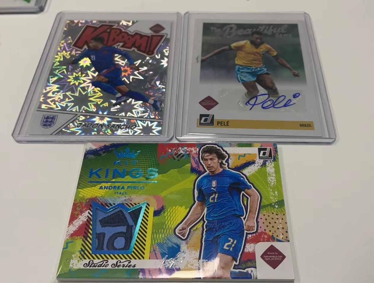 接下来是皮尔洛的亲传球衣,世界限量1张!切割的非常暴力!以及桑乔大比例特卡Kaboom,一箱仅有一张的特卡!还有就是球王贝利的不限量亲笔签字!