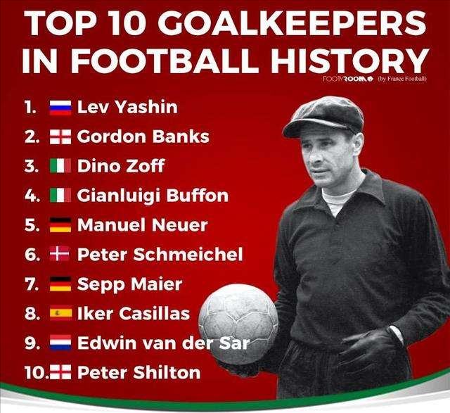 门将之神——雅辛,一生只效力于莫斯科迪纳摩队,帮助球队夺得5次苏联联赛冠军、6次亚军、3次杯赛冠军。世界最佳守门员奖——金手套奖的前身就是“雅辛奖”。他是世界上唯一获得过金球奖的门将,也是唯一当选欧洲足球先生的门将,1970年评选世界最佳球员排名仅次于贝利,2000年被国际足联评为世纪门将。球王贝利说:“要想攻破雅辛的大门,你需要付出成倍的努力。”无论任何机构的官方排名中,守门员的第一位永远都是雅辛。