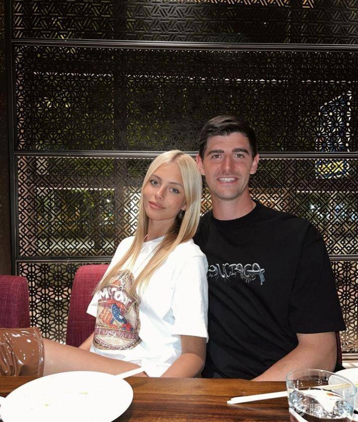 皇马门将库尔图瓦更新了社交媒体,他晒出了与女友的合影。
