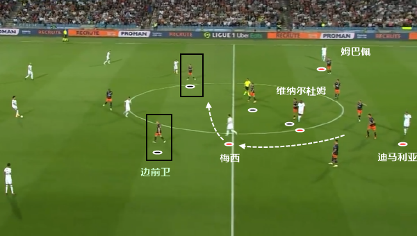 本场比赛姆巴佩的定位就是一个左边锋,尽可能拉开到边路和传球,也为伪九的中路梅西制造了很多的机会。