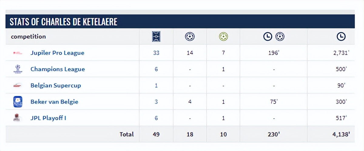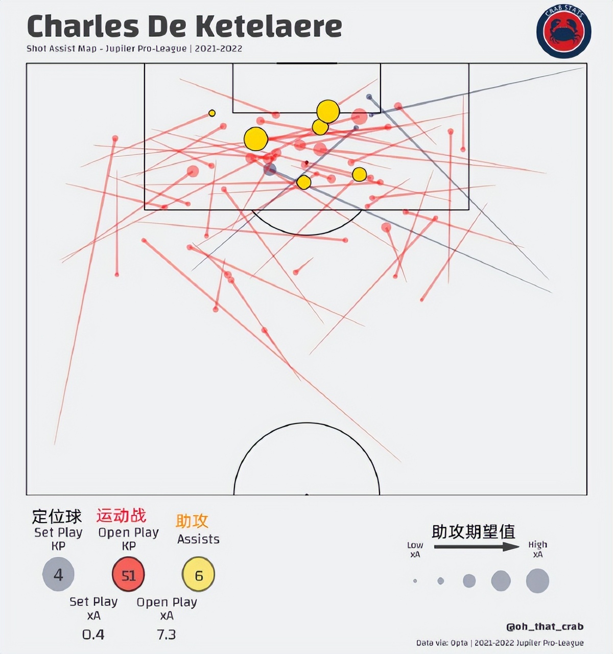 从上赛季在比利时联赛的传球数据可以看到,送出55次带来射门的关键传球,预计助攻高达7.7次的德卡特莱尔,最终收获6次助攻,还是因为对手打飞了好几次得分良机。