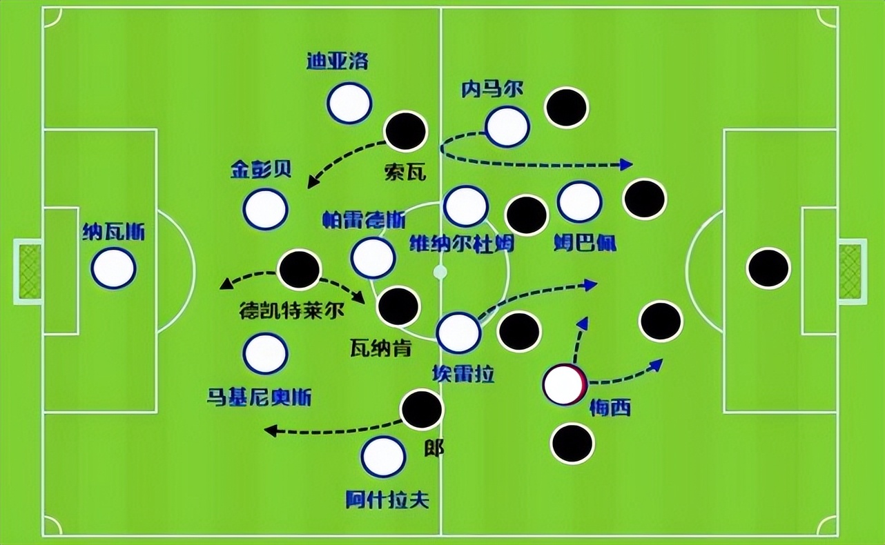 这一次给禁区肋部的直塞找诺阿朗是一个例子,可惜队友横传后点被破坏。