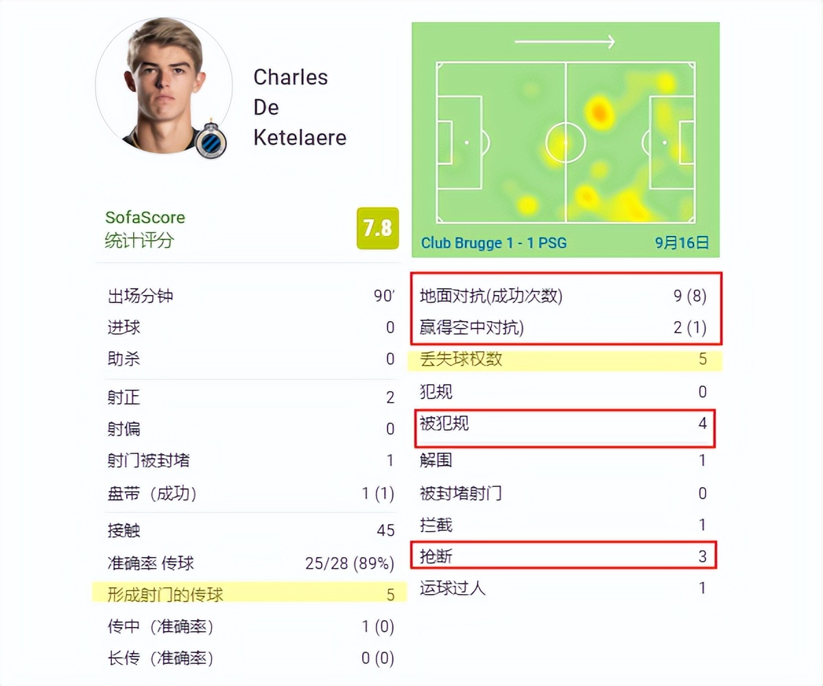 与莱比锡的小组赛第二场,同样是10次脚下一对一对抗赢下7次,完成2次抢断,送出3次带来射门的关键传球,制造对手3次犯规。