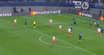 尤其是面对莱比锡红牛时,对位对手的法国中卫西马坎,德卡特莱尔的优势巨大,不仅仅正面持球能轻松加速过人,背身对手也无可奈何,只能多次犯规。