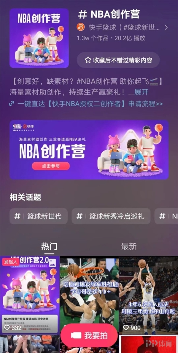 作为国内首个NBA二创平台,快手拥有NBA提供的海量赛事素材版权。在此背景下,快手在为创作者开放专属内容创作后台的基础上,又推出"NBA创作营”计划,鼓励和支持用户进行篮球内容二创,并为优秀作品提供推广资源和商业化机会,扶持优秀创作者成长。