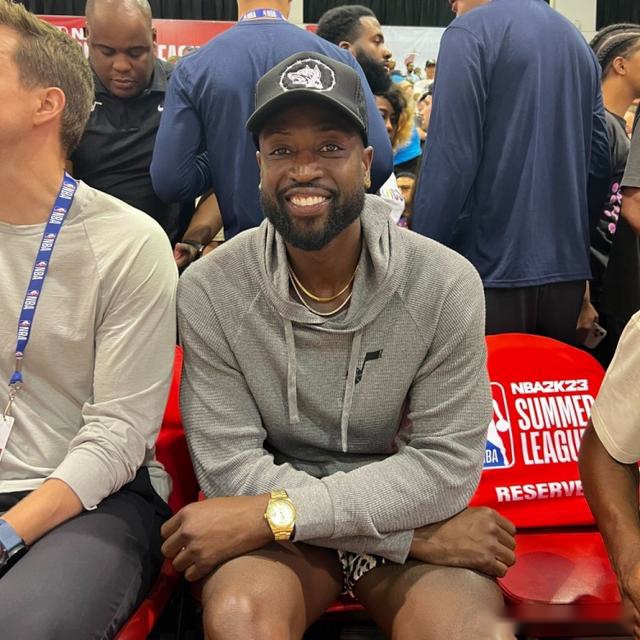 爵士对阵独行侠的比赛,前NBA名宿、爵士小老板韦德现身赛场助威爵士,大金链子、小手表让球迷看到的眼花缭乱,球迷表示:“韦德这身打扮我打9分”。