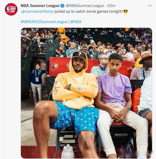 安东尼最近比较忙,一边忙着训练,希望重返赛场再打一年,一边陪儿子观看夏季联赛,希望能够让他长长见识。
