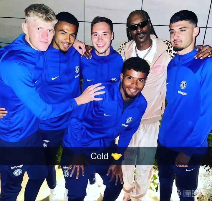 近日,切尔西开启了美国行,美国嘻哈传奇人物Snoop Dogg来到蓝军在洛杉矶的训练营与队员们合影留念。
