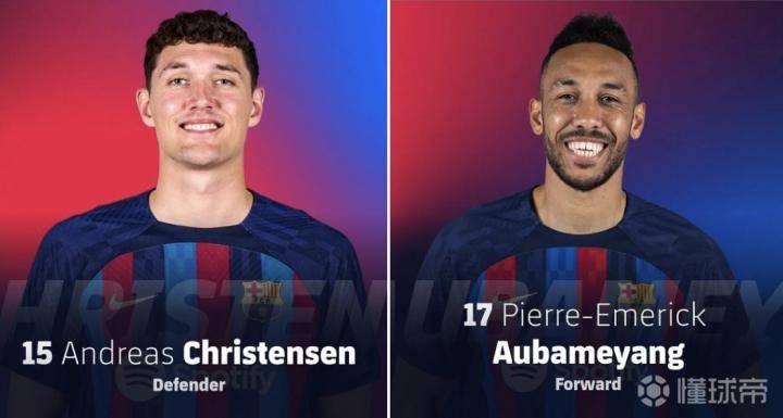 巴萨官方消息,克里斯滕森将身穿球队15号球衣,奥巴梅扬改穿17号。