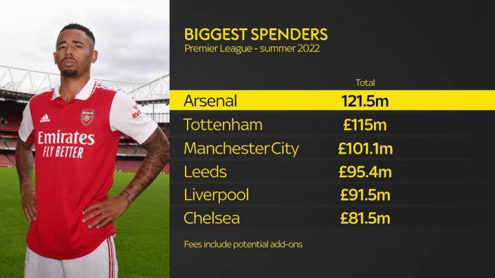 今夏,阿森纳已经花费了1.215亿英镑引进5名新球员,这其中包括热苏斯、津琴科、法比奥-维埃拉、马尔基尼奥斯以及马特-特纳。