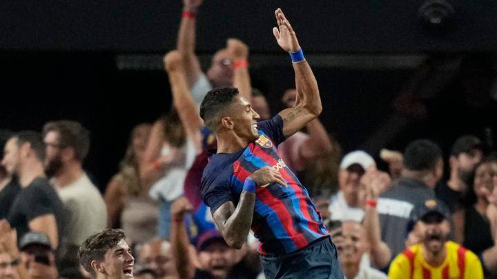 巴萨新援拉菲尼亚在赛季前的西班牙国家德比中攻入制胜进球
