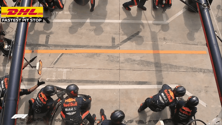 在F1运动历史上,速度最快的一次进站由红牛车队在2019年巴西大奖赛时创造,他们仅用时 1.82秒 便完成维斯塔潘赛车的进站流程,真可谓是一眨眼的功夫,所有工序便行云流水般一气呵成。