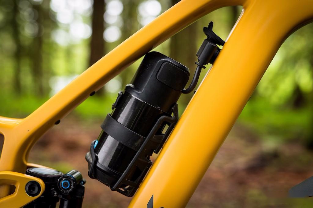 更方便的是,可以放在水壶架上的160Eh增程电池可以充当煮点吃的充电器,并先使用其电量。 两块电池的充电时间均为两小时 ,增程电池为整车增加了900g的重量,但我们在测试过程中并没有使用这款增程电池。我们发现增程电池与 Bontrager Side Load 水壶架配合使用效果最佳,经过一番努力,将其放入另一个品牌的水壶架。