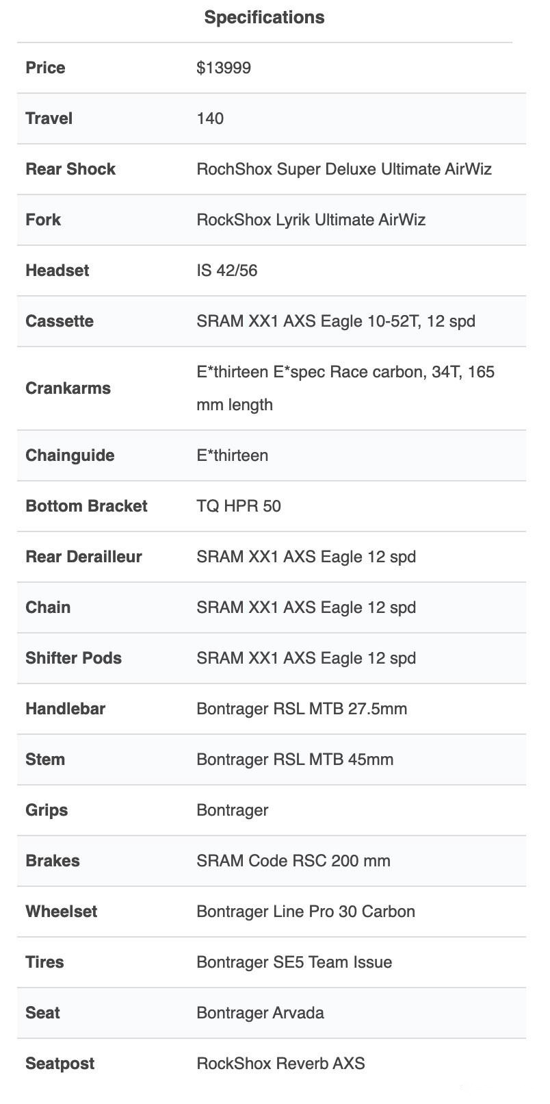 Bontrager SE5 Team Issue轮胎: 不过,阻止Fuel EX-e发挥其出色性能的是Bontrager SE5轮胎。它们在干燥的泥土工况中表现很好,但在我们在Squamish经历了雨水浸透的夏天,这这种工况下它们很快就在光亮的树根和闪闪发光的岩石上开始打滑。它们在30mm宽的Line轮组上的圆形轮廓意味着靠在侧向抓地力的损失。我很早就将它们换成抓地性更好的轮胎来解锁这辆车的真正能力。