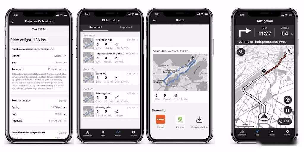 在测试期间,APP还没有推出,因此我们无法使用电机调整选项或范围云功能来知道剩余电池寿命可以行驶多远。除了可以通过你首选的任何ANT+设备连接到Strava之外,该应用程序将显示9.9 XX1 AXS 型号上的AirWiz和TireWiz压力传感器数据。