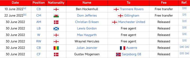 本·霍克赫尔 Ben Hockenhull 特兰米尔(英乙) 多米尼克·杰弗里斯(C) Dominic Jefferies 吉林汉姆(英乙) 克里斯蒂安·埃里克森 Christian Eriksen 曼联(英超) 路易斯·戈登 Lewis Gordon 自由球员 马克斯·海加斯 Max Haygarth 自由球员 维尼尔·赫拉克勒斯 Wraynel Hercules 自由球员 尤利安·让维耶 Julian Jeanvier 欧塞尔(法甲) 古斯塔夫·莫恩森 Gustav Mogensen 萨普斯堡(挪超) 汉斯·姆彭戈 Hans Mpongo 图罗杜尔(冰岛甲) 扬科·奥克萨宁 Jaakko Oksanen 古比斯(芬超) 裘德·拉塞尔 Jude Russell 自由球员 罗伊·塞拉 Roy Syla 自由球员 赞卡 Zanka 自由球员 多米尼克·汤普森 Dominic Thompson 布莱克浦(英冠) 马库斯·福什 Marcus Forss 米德尔斯堡(英冠)