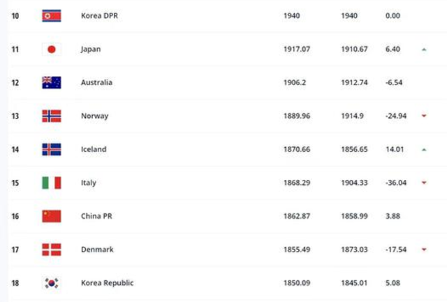 神奇之处在于2019年3月之后,朝鲜女足受到疫情影响,已经3年没有踢任何国际比赛,但是FIFA排名依然高居第10,长时间霸占亚洲第一名的宝座。造成这一现象的原因是FIFA积分规则所致,朝鲜女足之前攒了不少积分,击败了多支非世界强队,2019年3月之后拿到了1940个FIFA积分,这个积分3年不变,而日本女足、澳大利亚女足、中国女足、韩国女足在这三年时间起起伏伏,导致积分始终追不上朝鲜女足,日本女足目前1917个FIFA积分,与朝鲜女足仍有一定差距。