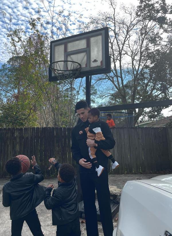 休赛期布克还与家中的小孩子一起互动,带孩子们一起打篮球,而詹娜是完全超越传统的女孩。