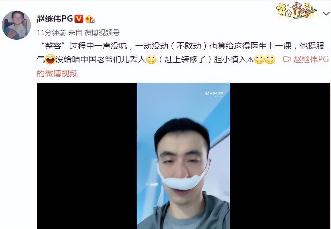 今日,赵继伟通过个人社媒发布了自己接受鼻骨治疗修复的相关视频以及修复后的鼻部情况。同时,赵继伟配文道:“‘整容’过程中一声没吭,一动没动(不敢动)也算给这的医生上一课,他挺服气,没给咱中国老爷们儿丢人(赶上装修了)胆小慎入。”